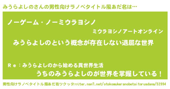 | ヘコむあだ名 | 『みうらよしの(小並感)』『みうふぇ~』 |