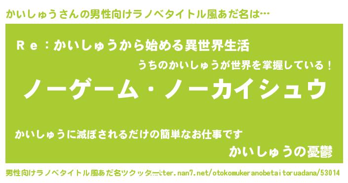 | ヒーロー風カッコイイあだ名 | 『慈愛の使者かいしゅう』『天弓騎士カイ』 |