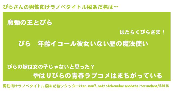 | 女子向けラノベタイトル風あだ名 | 『ぴらの玉の輿計画!』『ぴら様がみてる』 |