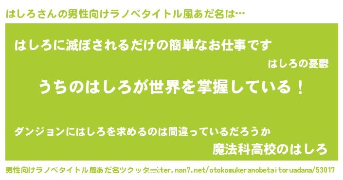 | 意味不明あだ名 | 『自称はしろ』『ペロリンはしろ』 |
