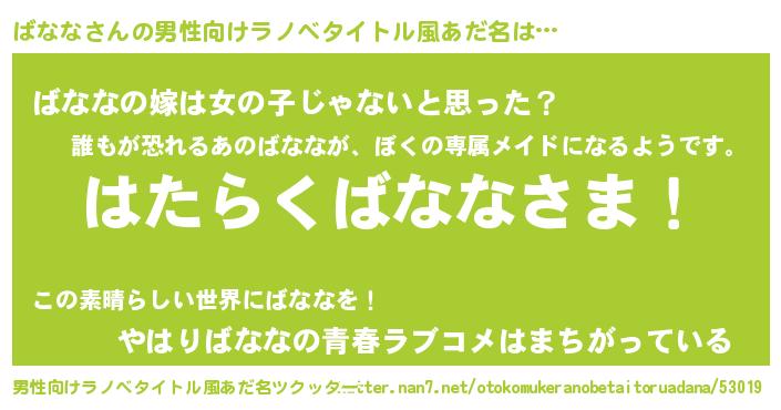 | ヒーロー風カッコイイあだ名 | 『魔戒騎士バナ』『ウルトラばななマン』 |