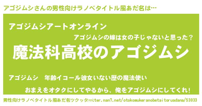 | 胡散臭い通販商品みたいなあだ名 | 『テレビで話題のアガリクス…その名も「アゴジムシ」』 |