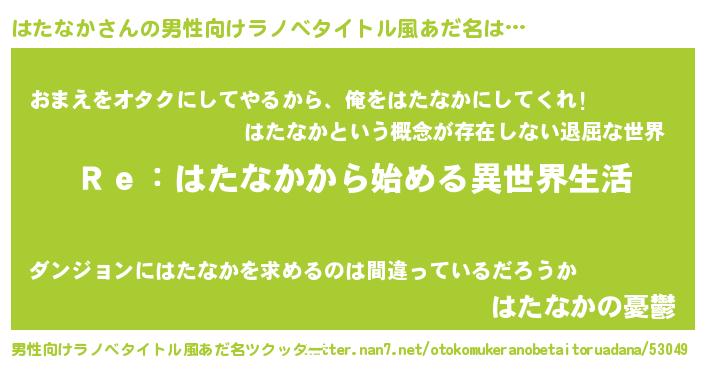 | 女子向けラノベタイトル風あだ名 | 『闇のはたなか』『はたなか恋絵巻』 |