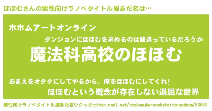 | 女子向けラノベタイトル風あだ名 | 『ほほむなんてお断りですっ。』 |