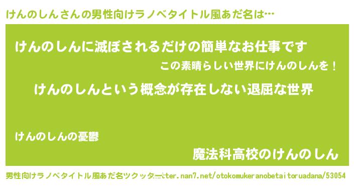 | 意味不明あだ名 | 『永久保存けんのしん』『自称けんのしん』 |
