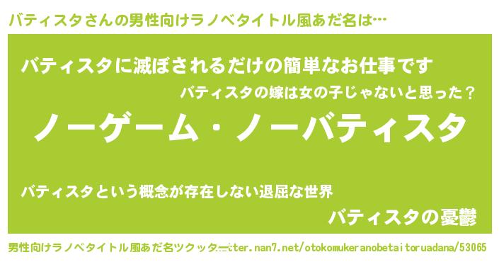| 女子向けラノベタイトル風あだ名 | 『死神バティスタの再婚』 |