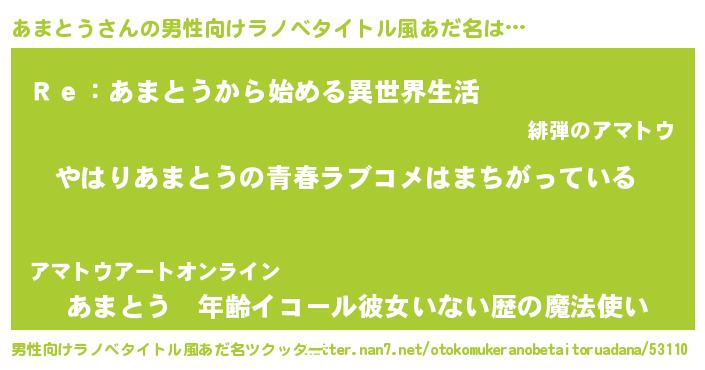 | 女子向けラノベタイトル風あだ名 | 『あまとうの雑貨屋さん』『闇のあまとう』 |