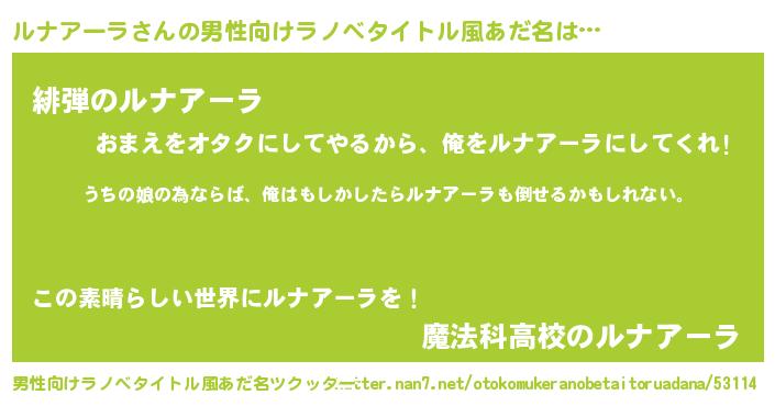 | 女子向けラノベタイトル風あだ名 | 『ルナアーラの婚約者』 |
