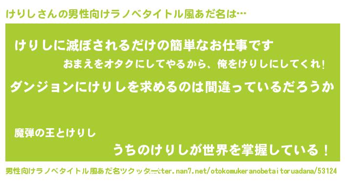 | 女子向けラノベタイトル風あだ名 | 『けりしは平凡を望む』 |