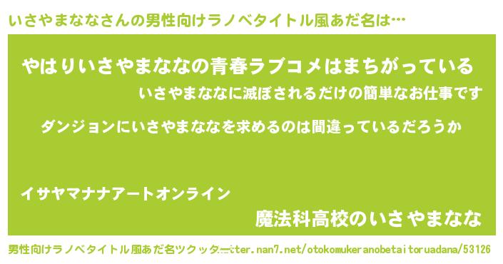 | ヒーロー風カッコイイあだ名 | 『暗黒騎士イサ』『スーパーイサヤマナナ』 |