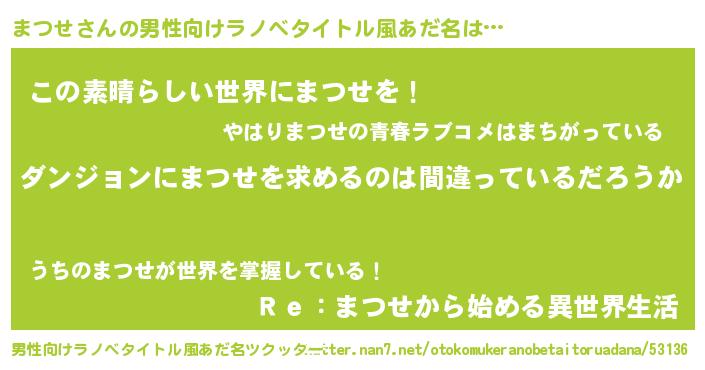 | 女子向けラノベタイトル風あだ名 | 『まつせの卵を拾いまして』『闇のまつせ』 |
