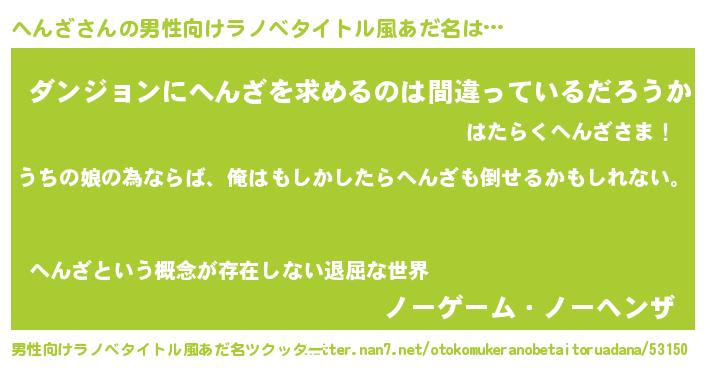 女子向けラノベタイトル風あだ名 | 『へんざの婚約者』『へんざは平凡を望む』 |