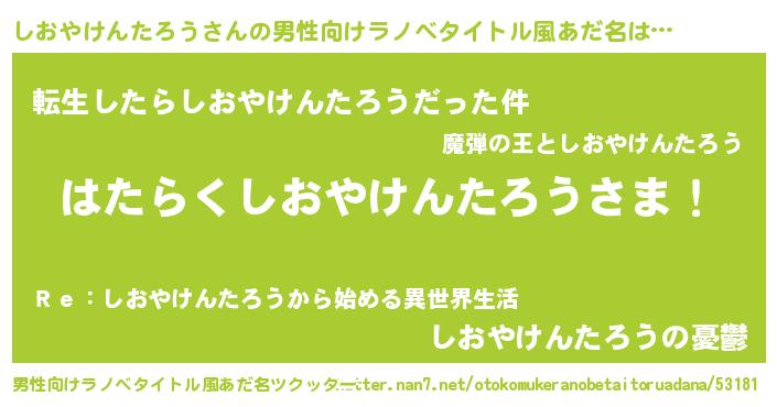 | 意味不明あだ名 | 『なめこ科しおやけんたろう属』 |