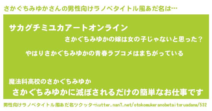 さかぐちみゆかさんの男性向けラノベタイトル風あだ名をツクッター!