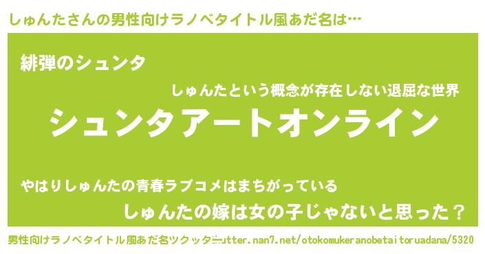 | 女子向けラノベタイトル風あだ名 | 『しゅんた姫と円卓の騎士』 |