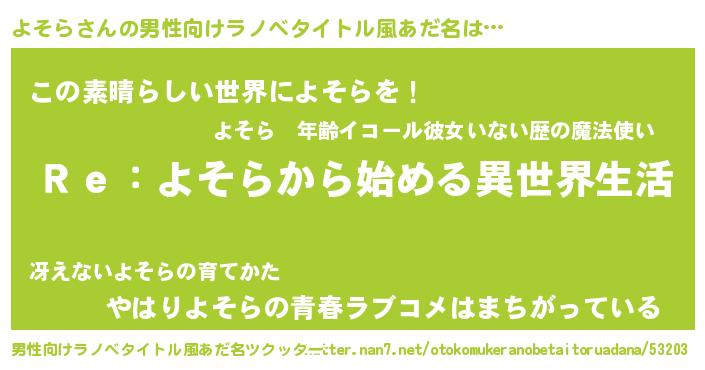 | 意味不明あだ名 | 『自称よそら』『住所不定無職よそら(1歳)』 |