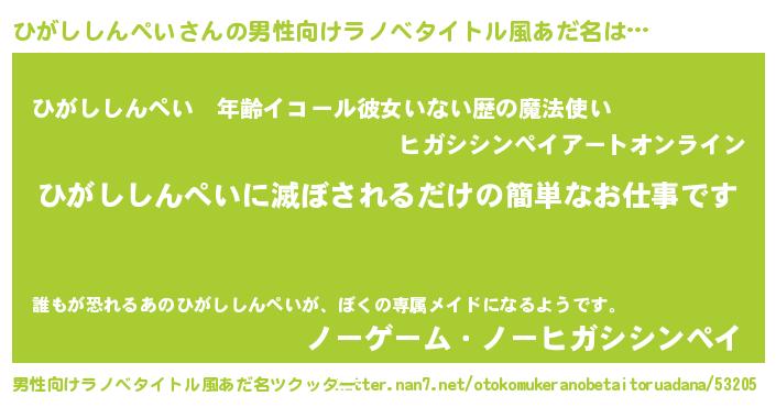 | 女子向けラノベタイトル風あだ名 | 『横柄ひがししんぺいと宰相陛下』 |
