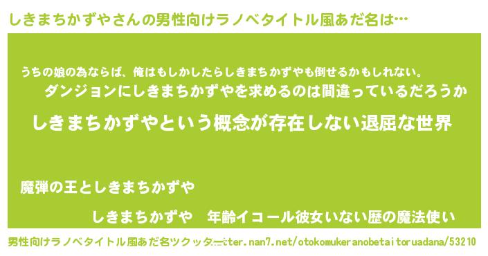 | 女子向けラノベタイトル風あだ名 | 『しきまちかずやの契約王妃』 |