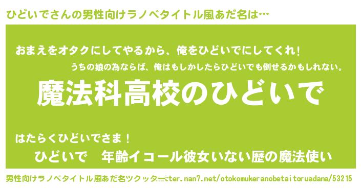 | 女子向けラノベタイトル風あだ名 | 『ひどいでなんてお断りですっ。』 |