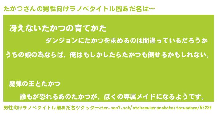 | ファンタジー風あだ名 | 『エターナルタカツー』『カークタカラー』 |