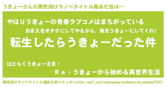 | 女子向けラノベタイトル風あだ名 | 『うきょーの玉の輿計画!』 |