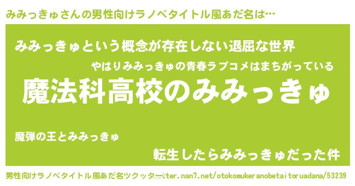 | 女子向けラノベタイトル風あだ名 | 『みみっきゅアンティーク』 |