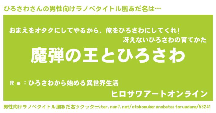 | 女子向けラノベタイトル風あだ名 | 『乙女ゲームの破滅フラグしかない悪役ひろさわに転生してしまった…』 |