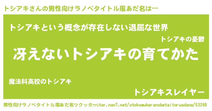 | 胡散臭い通販商品みたいなあだ名 | 『来世でも幸せになれる健康食品…その名も「トシアキ」』 |