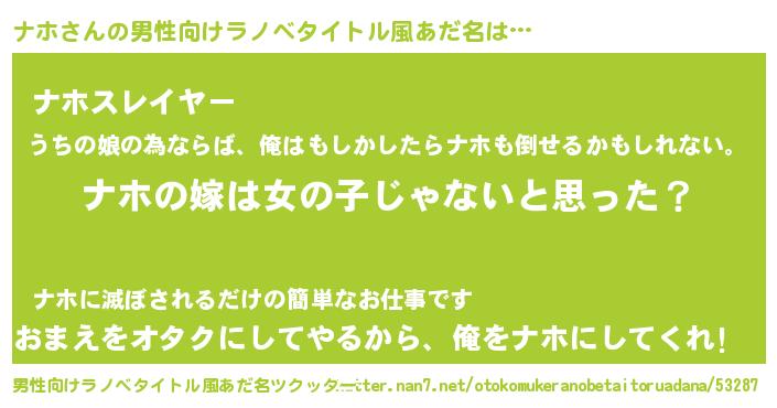 | 女子向けラノベタイトル風あだ名 | 『ナホ様がみてる』『ナホ夫妻のなれそめ』 |