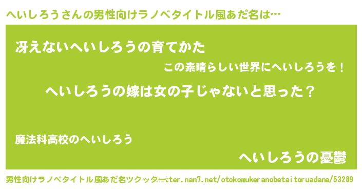 | 女子向けラノベタイトル風あだ名 | 『へいしろう様がみてる』 |