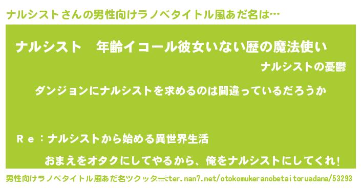 | 胡散臭い通販商品みたいなあだ名 | 『信頼と実績のサプリメント…その名も「ナルシスト」』 |