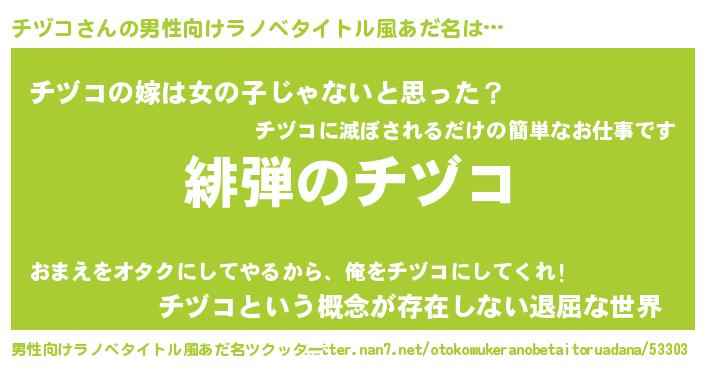 | 胡散臭い通販商品みたいなあだ名 | 『信頼と実績のサプリメント…その名も「チヅコ」』 |
