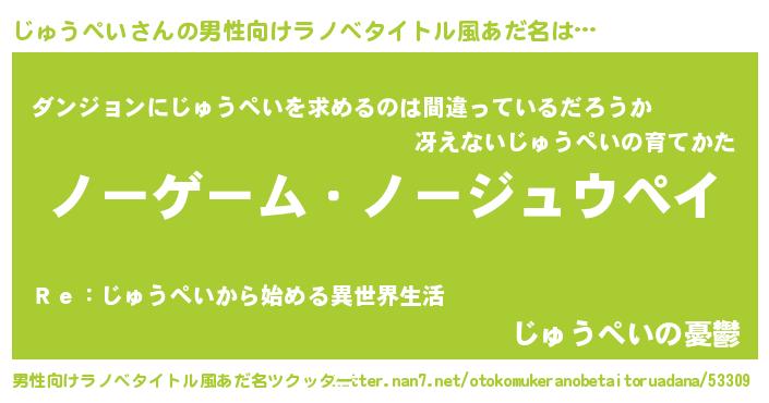 | 女子向けラノベタイトル風あだ名 | 『死神じゅうぺいの再婚』 |