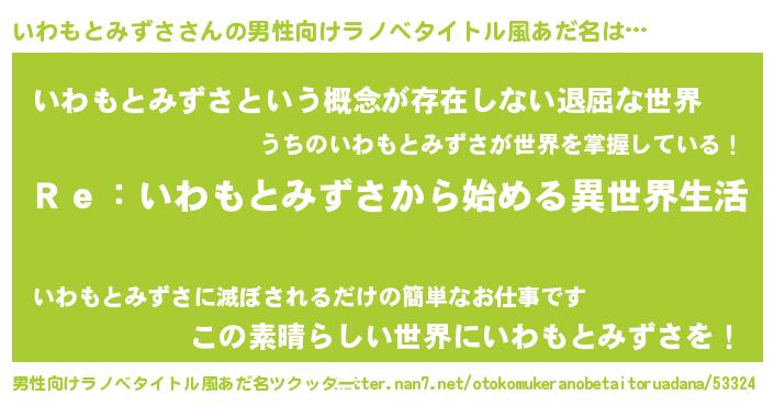 | ヘコむあだ名 | 『いわもとみずさ(笑)』『いわお』 |