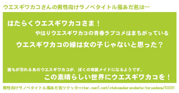 | 欧米人風あだ名 | 『ウサインウエスギワカコ』 |