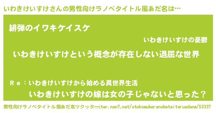 | 胡散臭い通販商品みたいなあだ名 | 『来世でも幸せになれる水素水…その名も「いわきけいすけ」』 |