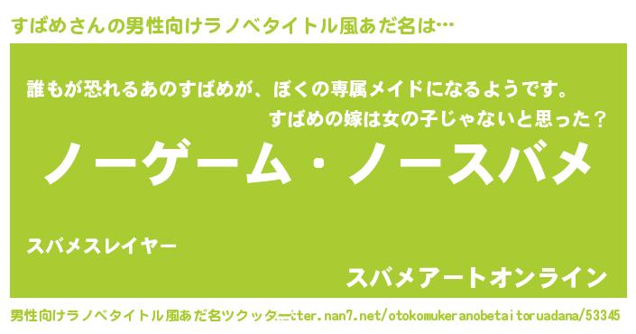 | ヘコむあだ名 | 『すばめ(小並感)』『すばもー』 |
