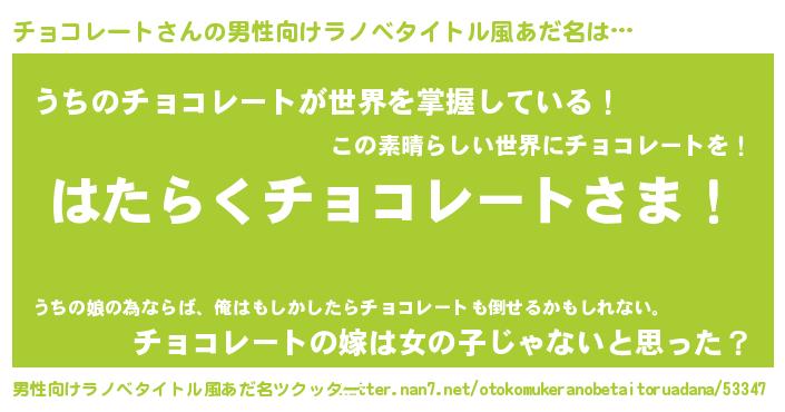 | 意味不明あだ名 | 『とにかく怪しいチョコレート』 |