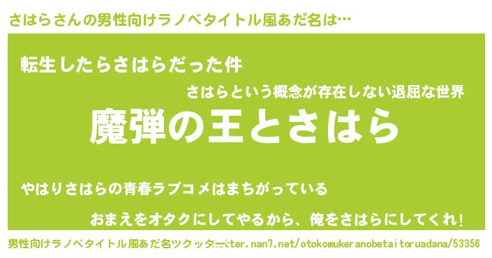 | 意味不明あだ名 | 『住所不定無職さはら(2歳)』 |