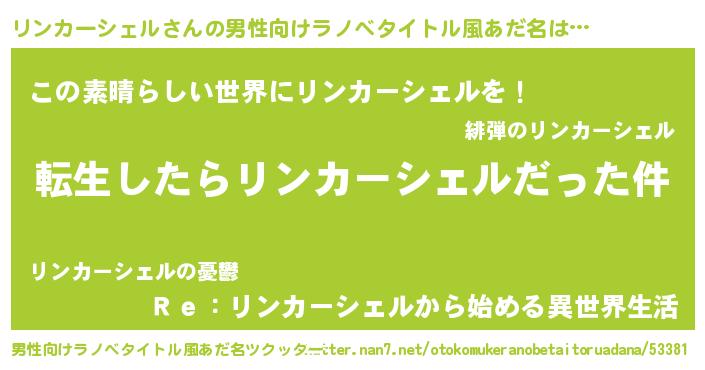 | 恥ずかしいあだ名 | 『リンカーシェルデラックス』『リンちん』 |