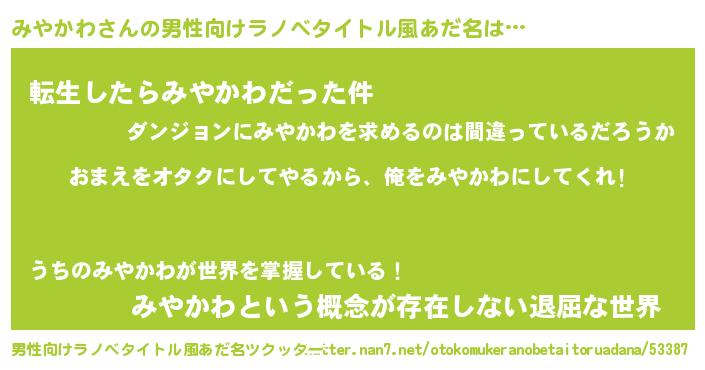 みやかわさんの男性向けラノベタイトル風あだ名をツクッター!