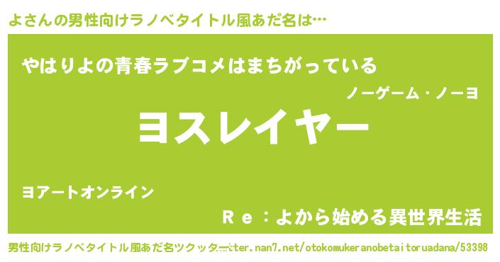 よさんの男性向けラノベタイトル風あだ名をツクッター!