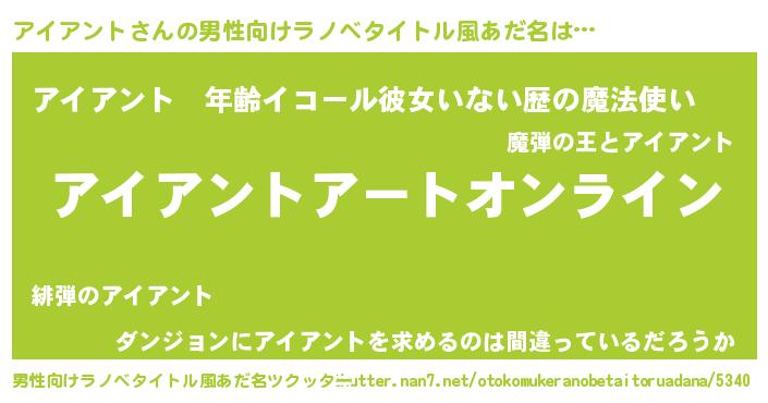 | 胡散臭い通販商品みたいなあだ名 | 『億万長者になれる霊験あらたかなお札…その名も「アイアント」』 |