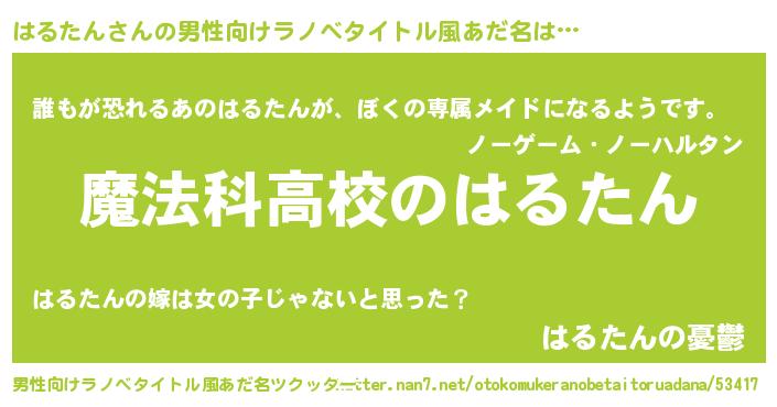 | 女子向けラノベタイトル風あだ名 | 『はるたんなんてお断りですっ。』 |