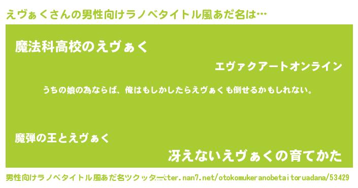 | 女子向けラノベタイトル風あだ名 | 『えヴぁくの婚約者』 |