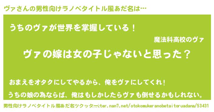 | 胡散臭い通販商品みたいなあだ名 | 『伝統あるサプリメント…その名も「ヴァ」』 |