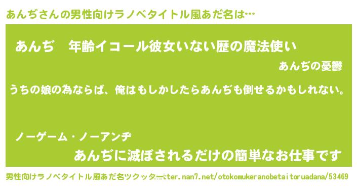 | 女子向けラノベタイトル風あだ名 | 『あんぢの婚約者』『あんぢ恋絵巻』 |