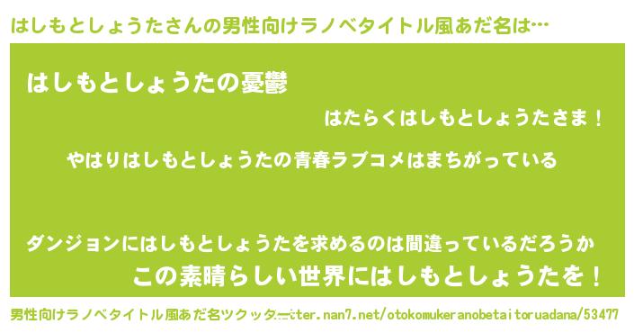 | 女子向けラノベタイトル風あだ名 | 『はしもとしょうたの雑貨屋さん』 |