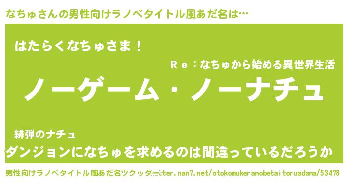 | 女子向けラノベタイトル風あだ名 | 『死神なちゅの再婚』『闇のなちゅ』 |