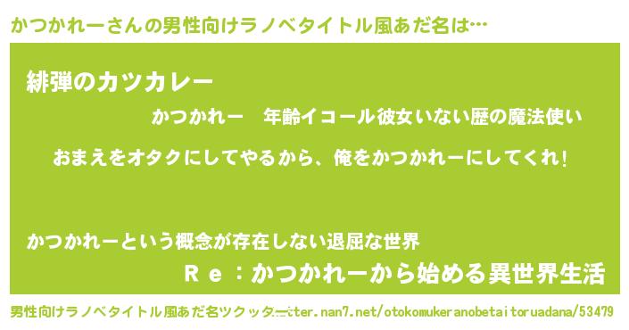 | 女子向けラノベタイトル風あだ名 | 『かつかれー夫妻のなれそめ』 |